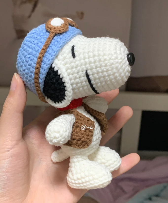 将两片拼接钩织一圈短针,拐角处钩V加针,再用金色空心纱引拔一圈