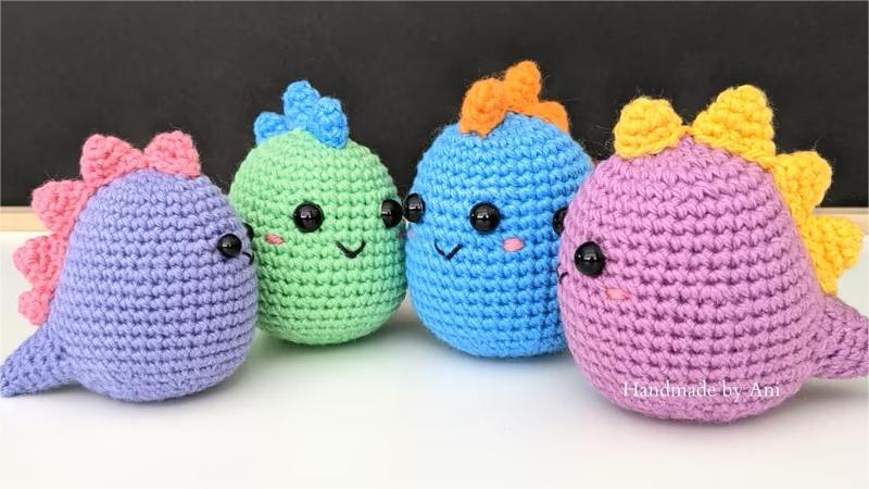 材料:头部和身体绿色 8股棉线、冠蓝色 8股棉线、8mm 眼睛、涤纶纤维填充棉、黑色绣花线刺绣嘴、粉红色绣花线刺绣脸颊